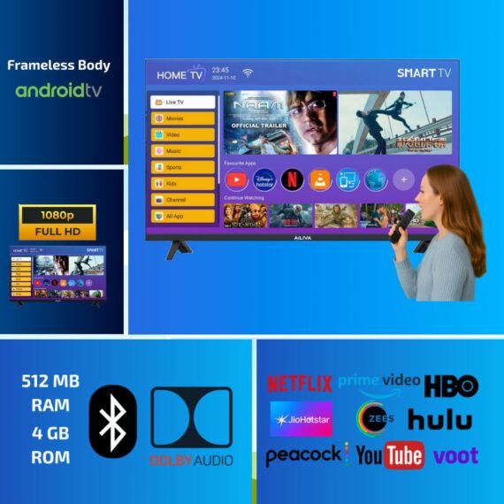 Experience the next level of home entertainment with the AILIVA F32AI-01 – a sleek and frameless 32-inch Smart TV designed to deliver vibrant visuals and seamless performance. Powered by Android 12 (AOSP) and equipped with a voice-enabled remote control, this TV brings smart features and quality entertainment into your living space.